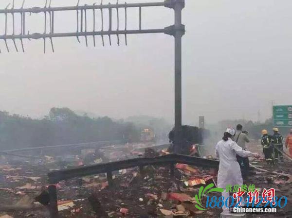 据江西省高速部门10月30日消息,当日15:20左右,距离沪昆高速公路分宜互通2公里处发生油罐车爆炸事件,爆炸导致分宜收费站内办公楼和宿舍大面积玻璃碎裂。现场图片显示,有大量烟花爆竹燃烧痕迹。李琴 摄