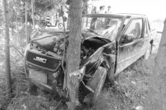 皮卡车被火车撞后又撞到树上。(警方供图)