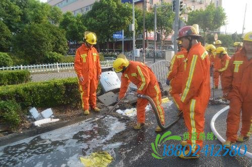 浦东消防中队庆宁支队等消防部门到现场后,用专业的吸油纸和小的水泵将路面油污进行吸出,防止对地下水造成污染。在吸出表面油污后,消防员再用水枪对现场进行冲洗。