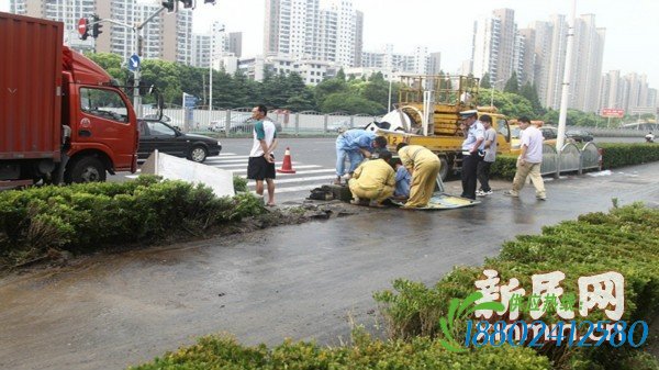 图说:图为工人正在抢修被撞坏的设备。新民网 陈炅玮 摄
