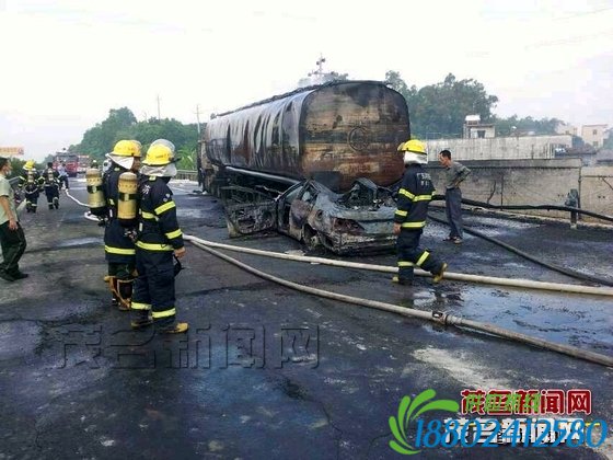 茂名新闻网讯 昨日上午7时左右,沈海高速公路茂港区坡心镇路段,一辆小车与一辆装载柴油的油罐车发生追尾相撞事故,造成三人死亡、一人重伤的较大道路交通事故。伤员被送往茂名市人民医院ICU全力抢救。 事故发生后,我市各级积极展开救援,公安、交警、消防、交通、环保、卫生等部门第一时间赶到现场救援,将事故的损失降到最低。