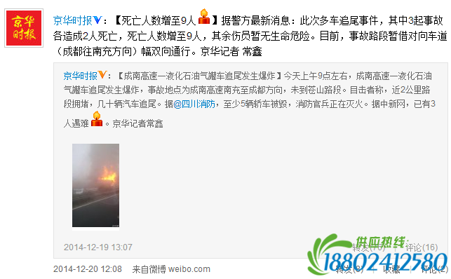 【死亡人数增至9人】据警方最新消息:此次多车追尾事件,其中3起事故各造成2人死亡,沈阳火车罐供应,死亡人数增至9人,其余伤员暂无生命危险。目前,事故路段暂借对向车道(成都往南充方向)幅双向通行。京华记者/常鑫
