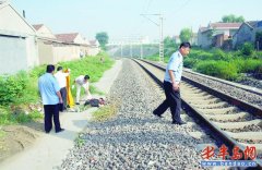 接到报料后,岳阳网记者随即赶赴事发现场。在桥西杀猪场往3517方向的一个铁路十字口聚集了不少围观群众,岳阳警方人员正在维护秩序、做现场取证调查,死者家属也已赶到,死者疑似被火车撞成两段,沈阳火车罐出售,尸身相距约1米余,分别用白布盖好,而大约3米开外的地方留有一双红色棉拖鞋。
