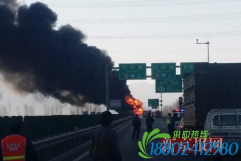 “大火得有10几米高,黑烟滚滚,我刚从那边开过,都看不清对面车道!”下午2时40分许,货车司机汪先生称,他由西向东开车经过京新高速桥时,看到了正燃烧的黄色油罐车。