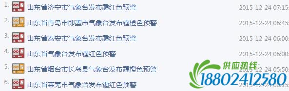 截至目前,济宁、即墨、泰安、长岛、莱芜等气象台也相继发布霾红色、橙色预警。今天夜间到明天早晨鲁西北、鲁南及鲁中北部地区将再次出现大雾;今天早晨全省出现严重霾,预计今天白天到明天上午山东大部地区仍将持续重度到严重霾天气。