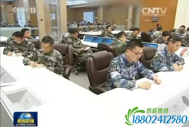 设有总指挥席。这一席位背后上方,写有“军委联合作战指挥中心”红底黄字。两旁各挂一幅巨幅地图:中国地图和世界地图。